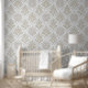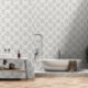Elevate your home decor with our Glam Beige & White Quatrefoil wallpaper, featuring a sparkling pattern that adds a touch of sophistication to your space.