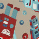 Ajoutez une touche de science-fiction à vos murs avec ce papier peint parfait pour les chambres pour garçons. Des illustrations de robots vintages mignons dans les tons rouge et bleu, ainsi que des noix de hexa coordonnés, sont placés contre un arrière - plan bronzé sur ce papier peint à motifs.