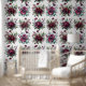 Papier Peint Belles fleurs bordeaux avec Feuilles verts