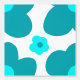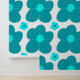 Big retro blue flowers pattern wallpaper. Teal and aqua blue colors on a white background.