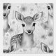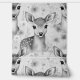 Aquarelle bois cerf animal avec taches dans un champ de fleurs sauvages en niveaux de gris.