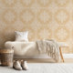 Le design Boho Chic Barrett Mandala en jaune de bois brun fait partie d'une collection qui présente plusieurs de mes motifs dessinés à la main dans de multiples couleurs. J'adore le détail complexe de ce motif et la façon dont il apparaît comme carrelage sur le mur. Faites-moi savoir si vous souhaitez une couleur personnalisée !