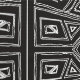 A bold, hand-drawn geometric pattern inspired by ancient symbols and tribal markings. The design features diamond-centered motifs radiating outward in a structured grid, with irregular linework.
