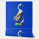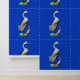 Un canard en bois peint et sculpté avec son canard, lourdement patiné, sur un arrière - plan bleu. Vous pouvez modifier la couleur de l'arrière - plan.