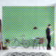 Mon oeuvre originale est présentée sur ce fond d'écran amusant, consistant en un motif en damier vert citron et turquoise dominant le motif de base. Celle-ci mesure 2 pieds x 8 pieds, mais vous pouvez choisir d'autres options de taille. Ce papier peel et papier peint est en vinyle texturé ou vous pouvez choisir le vinyle lisse aussi bien.