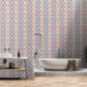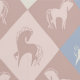 Chevaux et carreaux en bleu, rose vieux et crème