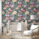 Papier Peint Chinoiserie Jade Flowers & Egrets Motif