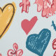 Ce papier peint à l'effigie du dessin est parfait pour les chambres d'enfants. C'est un papier peint coloré qui offre coeurs et fleurs.