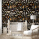 Papier Peint Cute Forêt foncée Champignons Or Vert Noir
