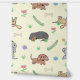 Caricature dessinée à la main mignonne chien chiot doodles avec fleurs, herbes et os ajoutés.