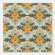 motif vintage floral damassé avec fleurs jaunes et feuilles verts sur arrière - plan blanc crème texturé.