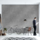 Diagonal black and white stripes form a seamless pattern, creating a dynamic and energetic visual effect. The bold contrast suggests movement.