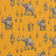 The *Diwali Elephant in Golden Field Toile de Jouy* pattern features ornate elephants adorned with lanterns and floral motifs on a radiant saffron backdrop, capturing the festive spirit and regal charm of India’s luminous celebration. Perfect for this theme DIY crafts and projects.
