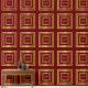 Papier peint bordeaux rouge et or élégant, élégant et glamourant, avec de grands carrés dorés brillants et étroitement liés pour produire un effet de carrelage. Option de texte personnalisable pour insérer un monogramme, des initiales, des textes courts ou des noms. La couleur Arrière - plan peut être customisée individuellement.