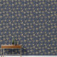 Papier peint élégant avec feuilles de gingko doré éparpillé sur un fond violet foncé.
