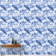 Transformez rapidement et facilement votre décor de maison avec ce papier peint peel and stick qui présente une magnifique toile de jouy bleue et blanche motif de paons et de fleurs.
