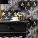 Atteignez les étoiles avec ce papier peint céleste captivant. Un motif envoûtant d'étoiles scintillantes aux teintes or, argent et rose danse sur un ciel nocturne sombre, créant une atmosphère magique et rêveuse. Ce papier peint adhésif est facile à appliquer et à enlever, ce qui le rend parfait pour ajouter une touche de merveille cosmique à n'importe quelle pièce.
