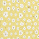 Lumineux, gai et ensoleillé, ce papier peint présente des fleurs blanches aux centres rouges, entrecoupées de points rouges, sur un arrière - plan jaune.