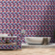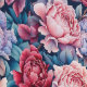 Ce papier peint présente des roses et des pivoines en bleu ciel doux, rose carapace délicat, rouge vin foncé, avec feuillage turquoise et violet dans l'arrière - plan. Beau et luxueux avec un look vintage de campagne qui est encore très moderne.