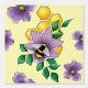 Une petite abeille mignonne dans une fleur couleur lavande avec un nid d'abeille et un arrière - plan jaune clair.