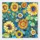 Fleurs de soleil jaunes, feuilles verts, Klimt vibe