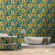 Papier Peint Fleurs de soleil jaunes, feuilles verts, Klimt vib