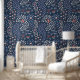 Papier Peint Fleurs modernes mignonnes Papillon Bleu Blanc Moti