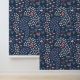 Fleurs modernes mignonnes Papier peel et papier peint Motif bleu blanc papillon présente un motif floral de fleurs blanches et rouges mignonnes avec papillons et libellules sur un arrière - plan bleu. Parfait pour la décoration maison, les salles de bain, les accents muraux et les soins, la décoration de bureau et la décoration de fête. Créé par Evco Studio www.zazzle.com/store/evcostudio