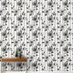 Papier Peint Fleurs noires et blanches sur lignes verticales Mo