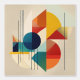 A bold and vibrant geometric abstract design inspired by the Bauhaus movement, featuring clean lines, intersecting shapes, and a harmonious balance of color. Deep blues, golden yellows, and warm reds combine to create a striking visual composition that celebrates simplicity and structure.