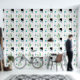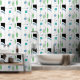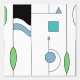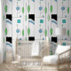 Grand abstrait de style moderne du milieu du siècle motif de géomètre dans un design propre et frais suggérant les feuilles de saules,... lignes en noir et blanc avec bleu, vert, aqua turquoise.