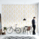 An abstract artwork combining geometric lines in soft tones of yellow and gray, creating perfect visual harmony. Ideal for modern spaces seeking sophistication and balance. Transform your environment with this contemporary art.