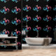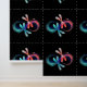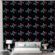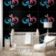 Infinity painted in neon, red and green paint, decorated with two luminous, contrasting dragonflies with glowing, transparent wings on black background. Glowing dragonfly.