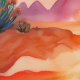 Aquarelle cactus dans le désert avec un beau papier peint couché de soleil.