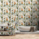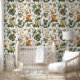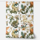 Une ménagerie de créatures fantastiques — y compris des dragons, des chevaux ressemblant à des licornes, des cerfs-serpents en berge, et des bêtes ressemblant à des renards géants avec un feuillage tourbillonnant luxuriant et des fleurs en fleurs.