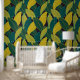 Papier Peint Lignes courbes Branches Feuilles Noir G624