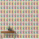 Un motif pop art pastel ludique et lumineux avec des machines à bulles de style vintage.