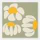 Retro dessiné à la main Dasies grand papier peint floral. Un design floral vintage et élégant sur un arrière - plan vert chic.