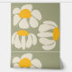 Papier Peint Main Tirée Dasies Rétro Gros Vert Floral