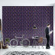 Embrace bold sophistication with minimalist, mid-century-inspired stripes in hot pink, white, and yellow on a deep navy background.