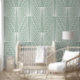 Un élégant motif art déco blanc surmonté d'un arrière - plan vert sage changeant. En changeant la couleur arrière - plan par rapport à la motif blanche, vous pouvez créer le mélange de couleurs qui correspond à votre décor.