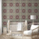 Belle décoration artistique florale vintage d'art motif, 1883, de William Morris (anglais, 1834-1896) avec feuilles verts et fleurs roses. Originaire de The Smithsonian Institution.