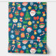Motif de Noël multicolore joyeux avec père Noël, rennes, elfes, bonhomme de neige, ours polaire, cadeaux, arcs rouges et verts, décorations, sucres de canne, chaussettes rouges, etc.
