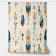 Ce superbe papier peint a un motif amérindien en plumes en plus des pois, en tanins, pêche et blues contre un arrière - plan couleur crème.