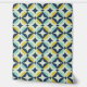 Ce motif moderne du milieu du siècle présente des formes dorées et bleues.