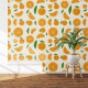 Papier peint avec une tranche, la moitié et le motif orange entier, pour le cadeau d'un amoureux d'agrumes. Il pourrait aussi servir à la décoration de votre maison !