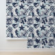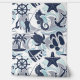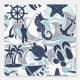 Un motif de plage amusant d'éléments nautiques y compris l'ancre, la mouette, l'étoile de mer et beaucoup d'autres, le tout en bleu marine avec tourbillons et des accents d'aqua bleu vague. Créez un décor de maison de plage ou de salle de bain avec ce motif original accrocheur. Recherchez ID839 pour voir d'autres produits avec cette conception.