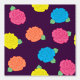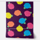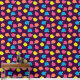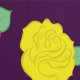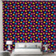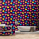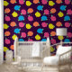 Des roses stylisés en rose néon, bleu, jaune et corail avec des feuilles vert néon sont répartis sur un arrière - plan violet profond pour créer un motif floral amusant.