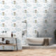 Papier Peint Ours Bleu Parapluie Nuages Coeurs Baby Boy Nursery