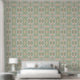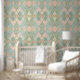Papier Peint Pale rose, Turquoise, crème et Motif Jacquard or